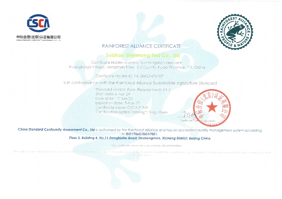 雨林聯(lián)盟認(rèn)證證書(shū)